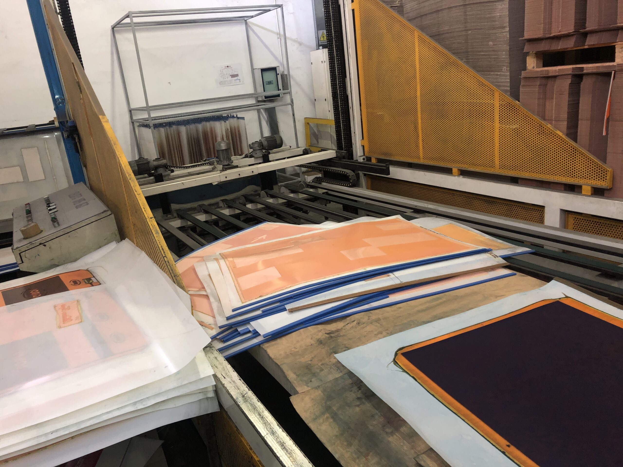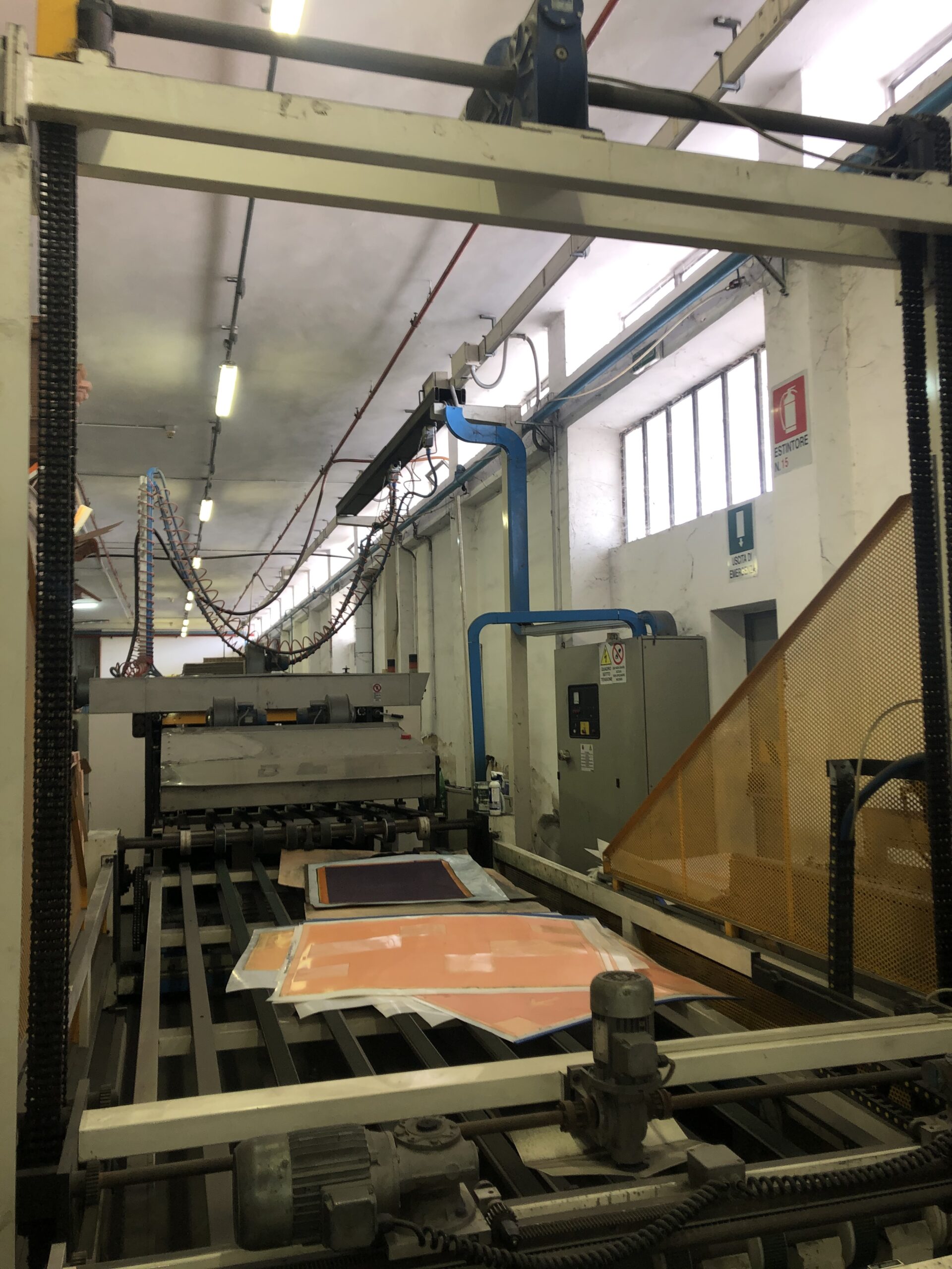N° 2 Flexo Printing Units CERAMIC ANILOX RACLA ROOM With Electrical Air Oven On Each Color Corrugated Board Max. Thickness 8 mm Solid Board Min. Thickness 1,3 mm Min. Sheet Width 400 mm Max. Sheet Width 1.600 mm Max. Printing Surface 1.600 x 950 mm Max. Speed 7.800 Sheets per Hour Diameter Cylinder With Cliché: 334 mm Cliché Thickness: 4,5 mm / UV Drying Ovens Vacuum Feeder Dry No stop delivery with automatic staker high pile AGE 1998 In production Video Price € 129.000,00 LOT
