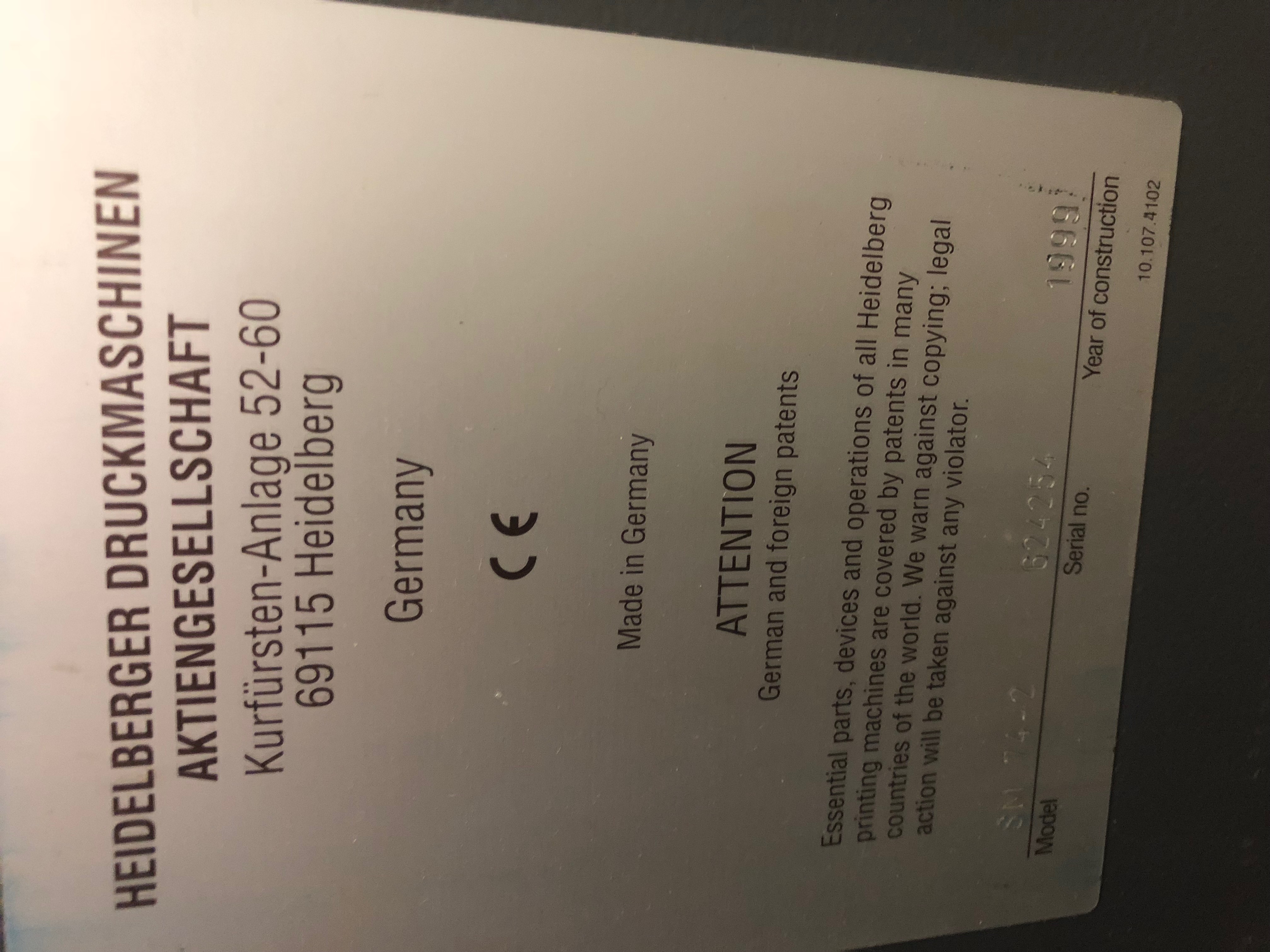 | Brand | HEIDELBERG |